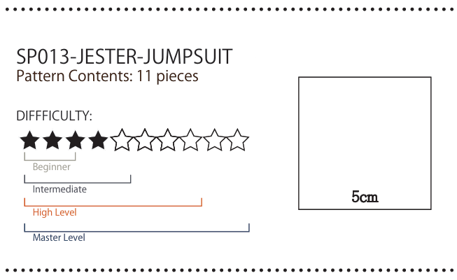 難易度:中級,適合已有服裝製作經驗與創意設計能力的縫紉者