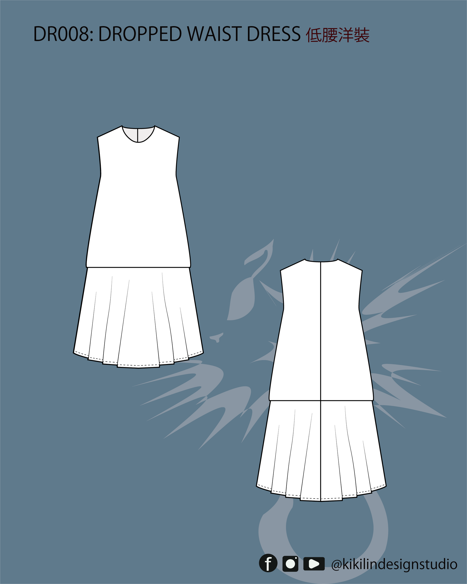Dropped Waist Dress Sewing Patterns | 低腰連衣裙縫紉版型( XS-2XL)