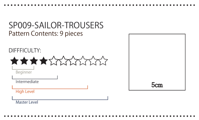 海軍風開襟褲 Sailor Trouser Open Front 版型(分為 XS–M、L–2XL 兩份 PDF 檔案)